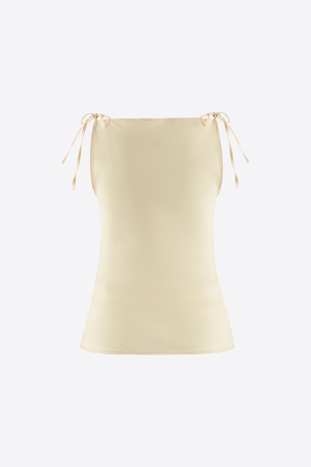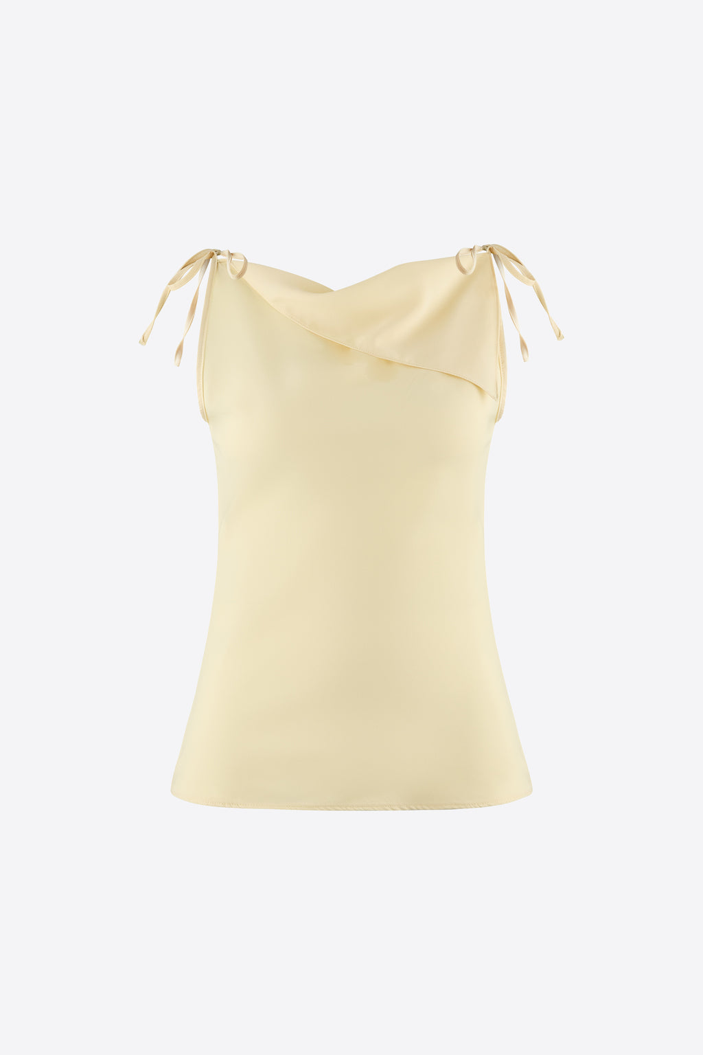 The Ember Top with an asymmetric draping neckline, ties together with two bows. Wear it off the shoulder, on the shoulder or as a halter neck for an effortless summer look.