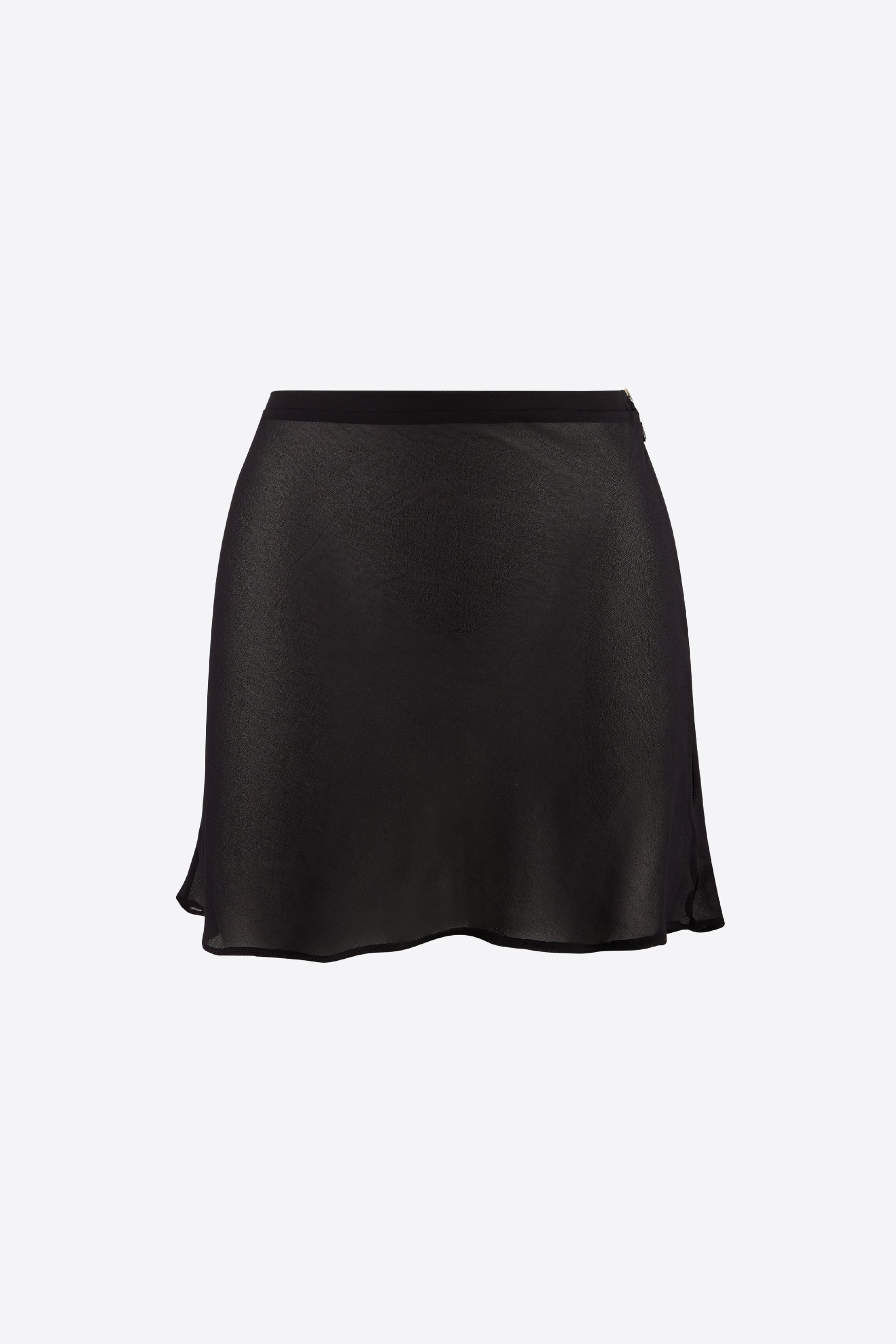 The Marin Mini Skirt, a sheer mini skirt cut on the bias, featuring a Mother of Pearl button fastening. The Marin Skirt is the perfect mini.