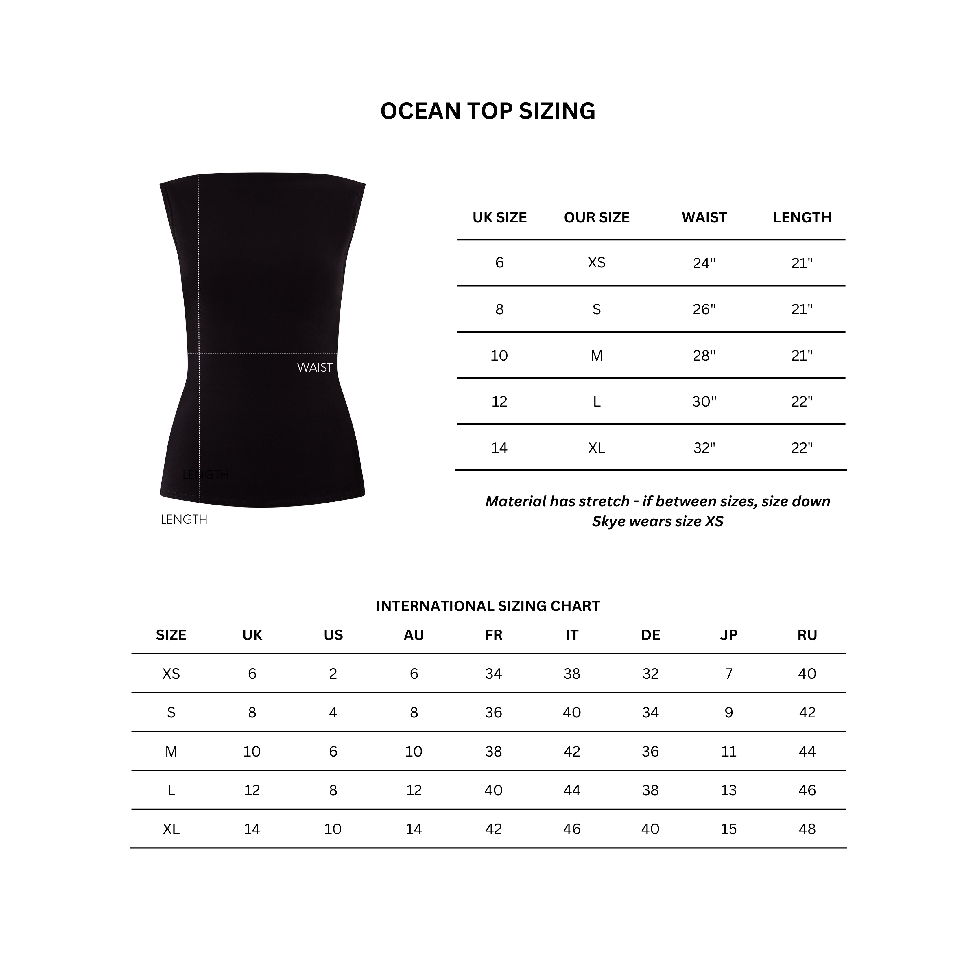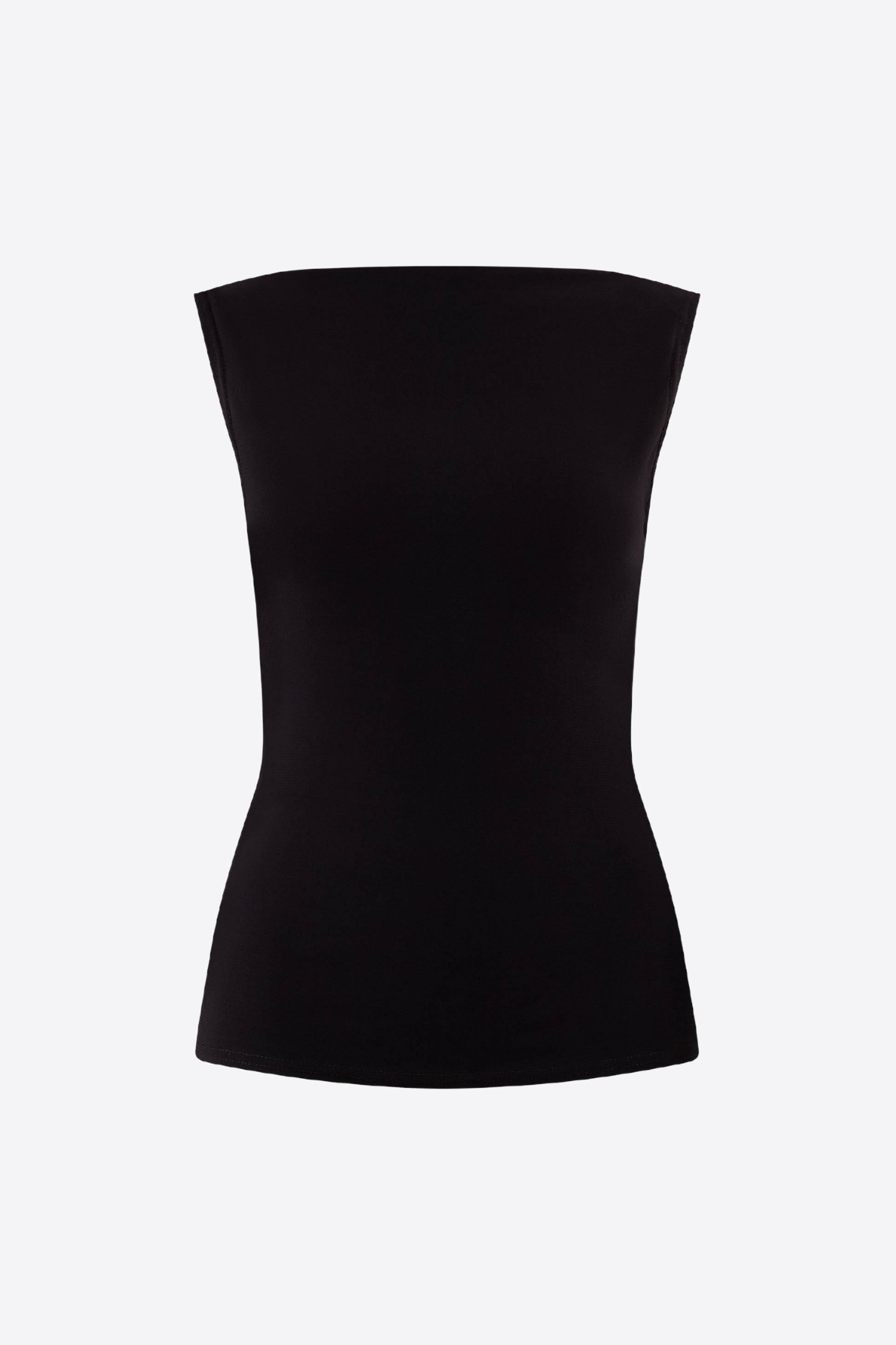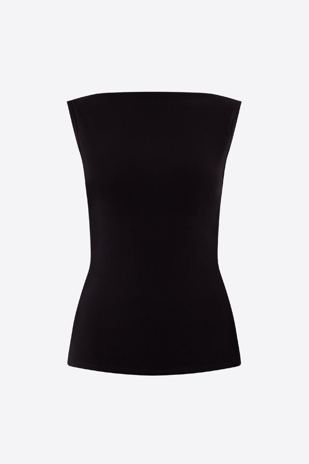 The Ocean top, an open-back top featuring a deep draping cowl back and a boat-neckline. The Ocean top is designed to turn heads.