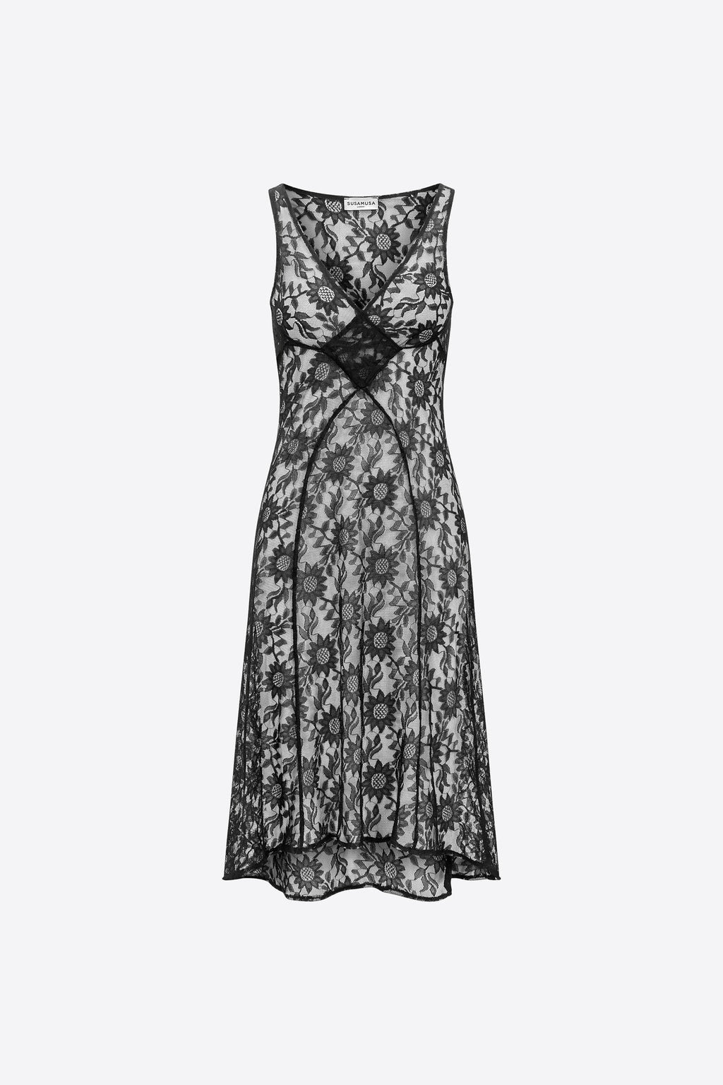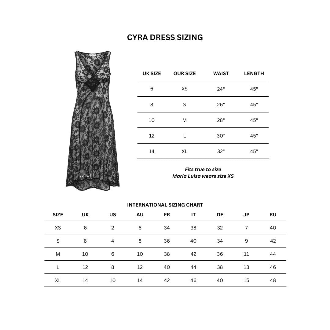 Sheer, dainty and with a cascading cut, the Cyra Dress flows romantically along the body. Made with vintage lace, you can layer it over a silk slip or wear her how she is, either way it is guaranteed to turn heads.
