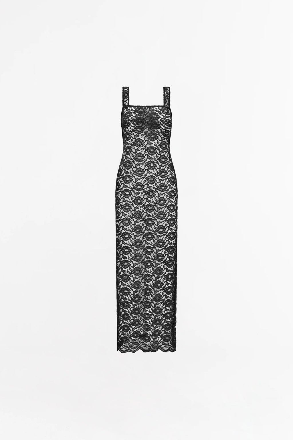 Made in beautiful corded lace, the Roya is finished with a scalloped hem, square neckline and thick straps.