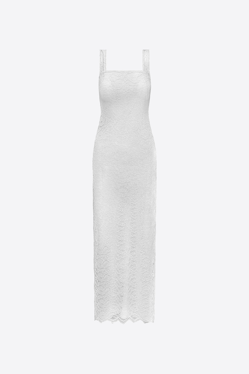Made in beautiful corded lace, the Roya is finished with a scalloped hem, square neckline and thick straps.
