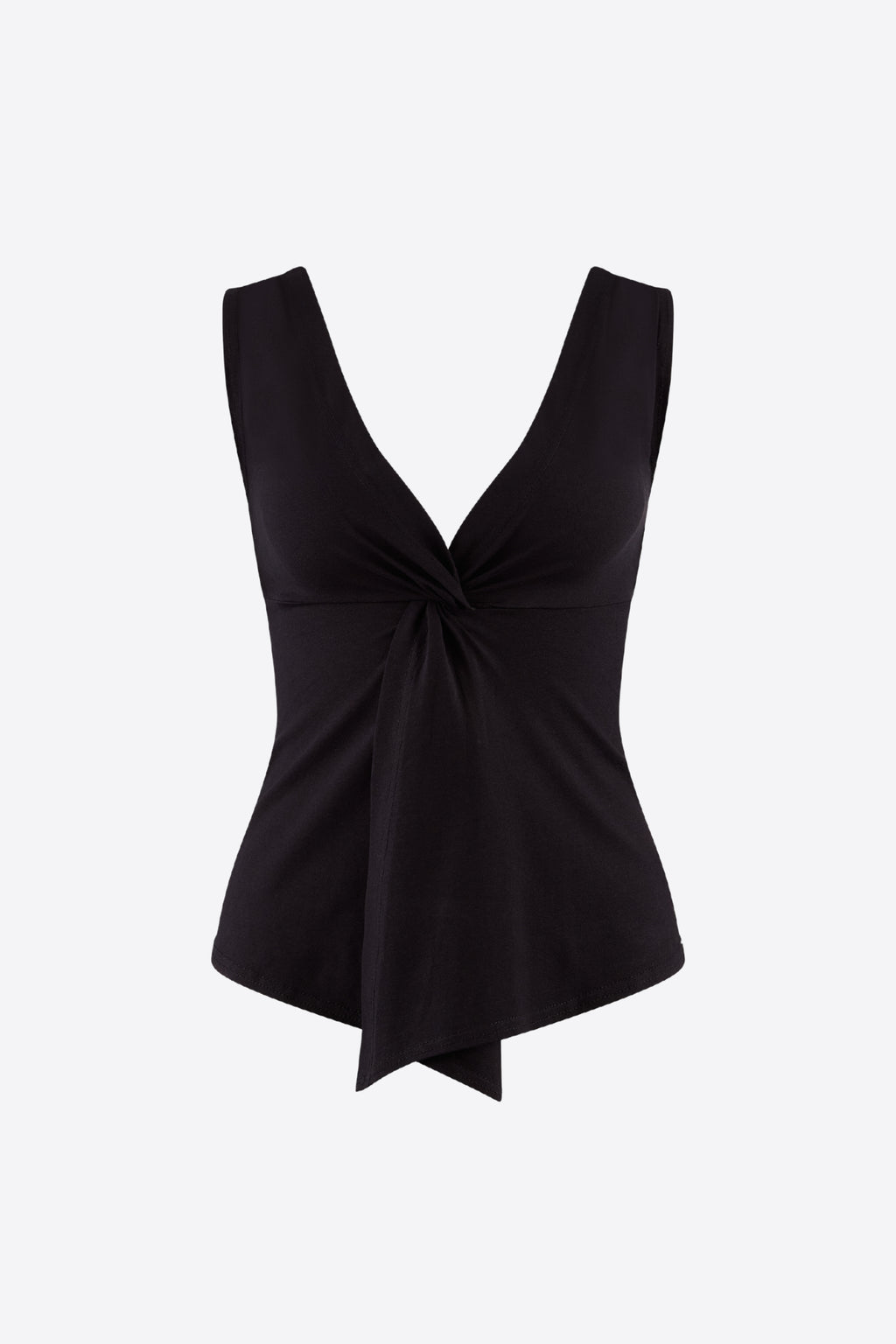 The Odine Top, made from cotton jersey featuring a cross-knot detail and an open slit. The Odine top is made to be playful.