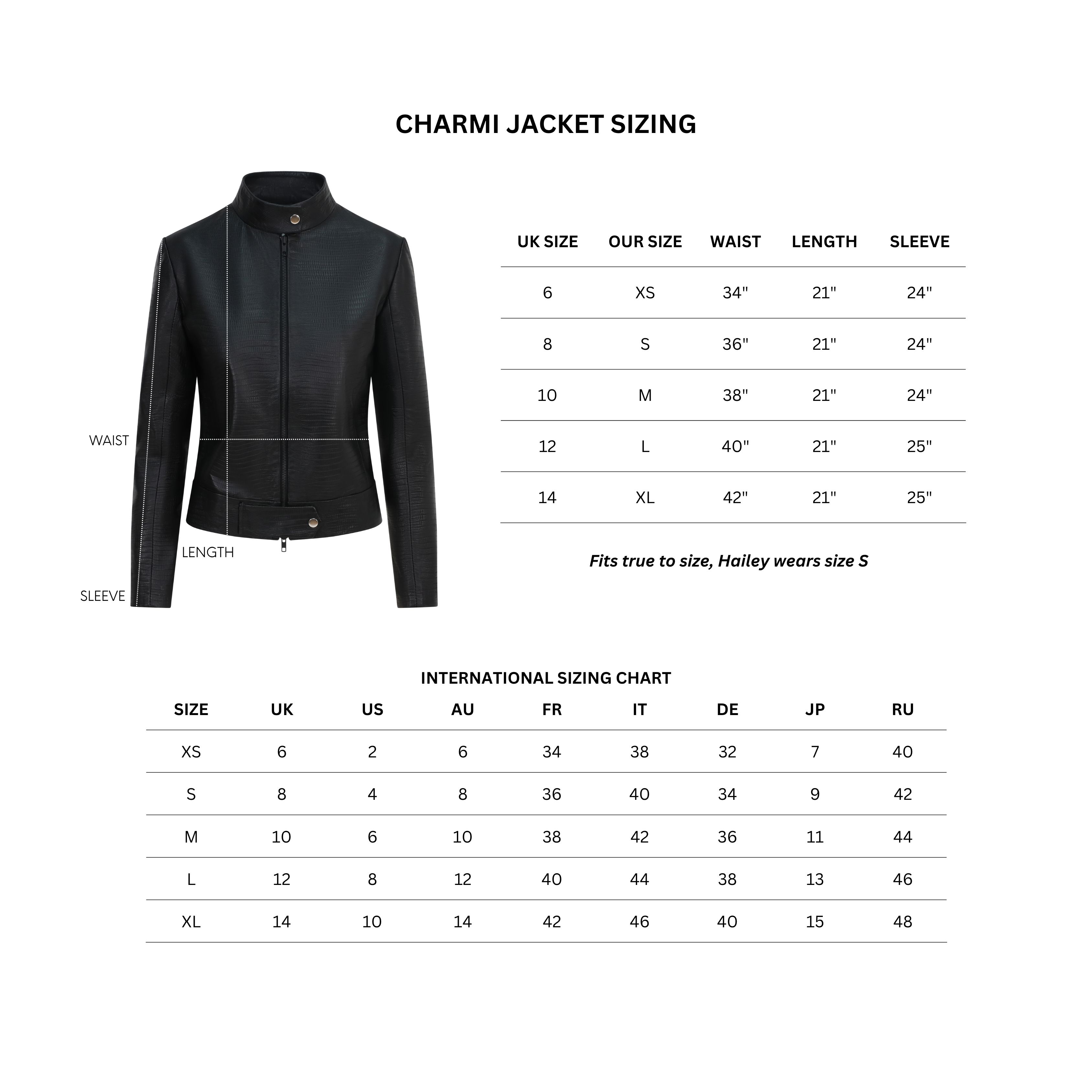 The Charmi Jacket is made to order in a London based leather studio and will take three weeks to be delivered.