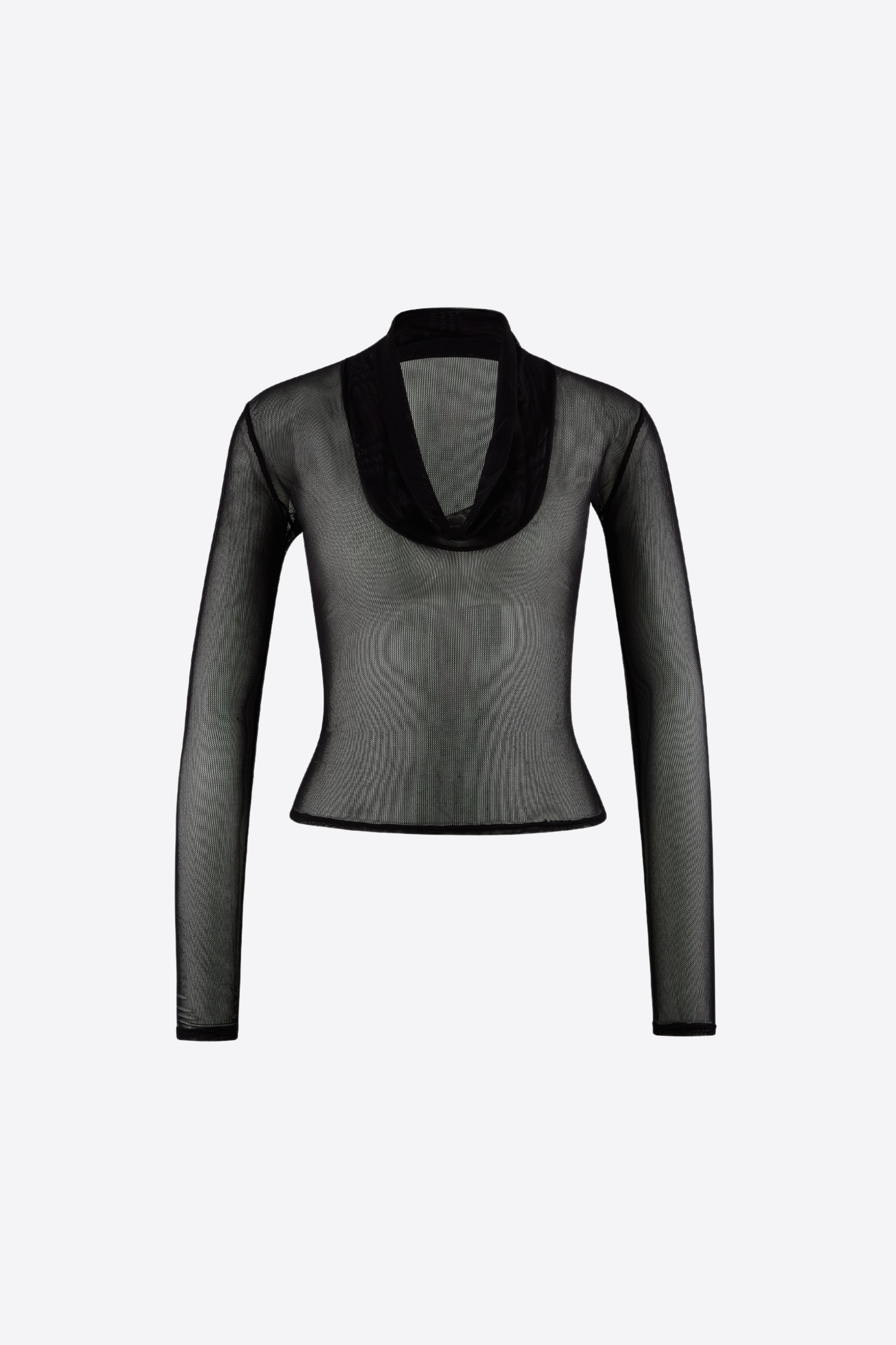 The Rumi Top, a sheer top with a draped cowl neckline. Sheer and barely-there the Rumi top is designed to feel like your second skin.