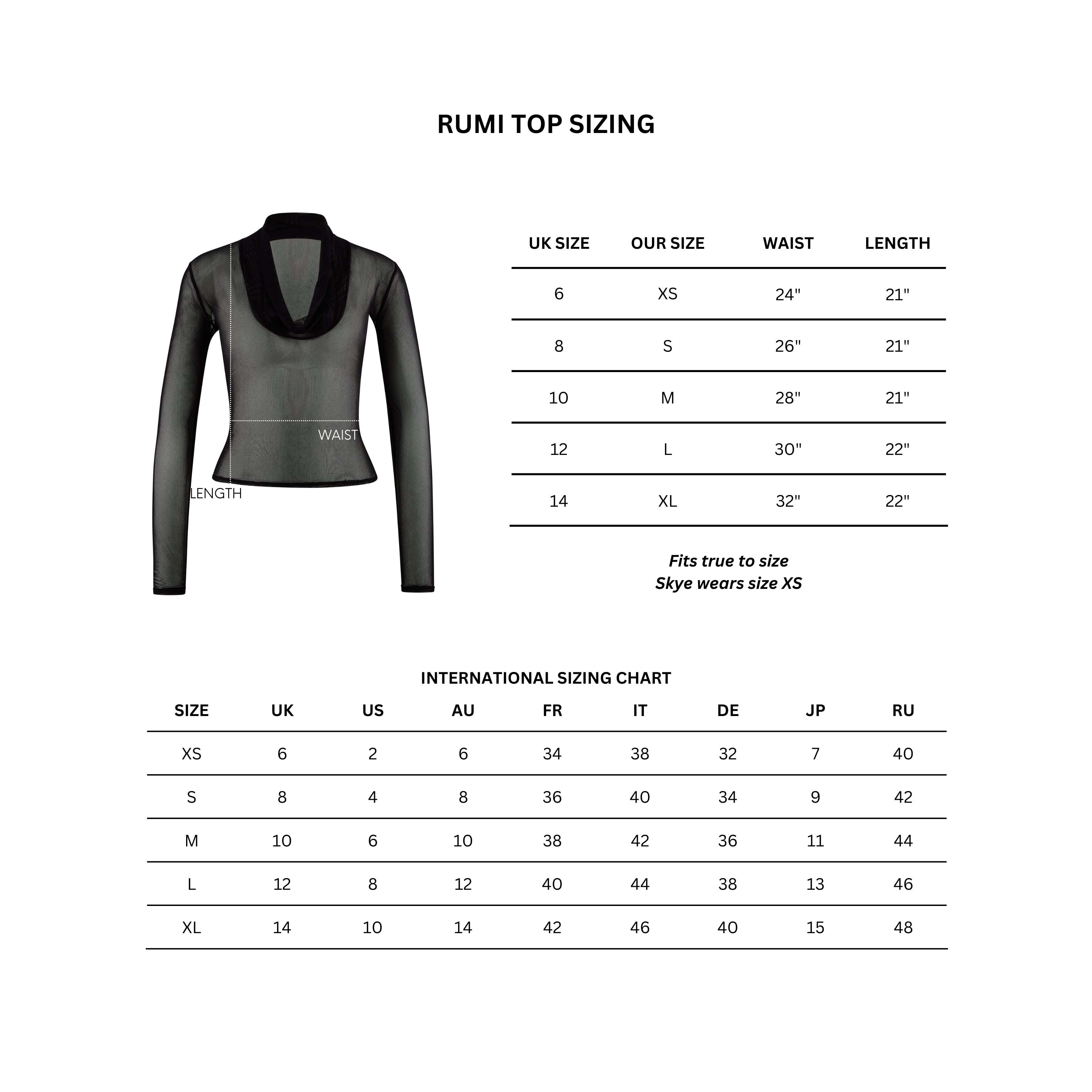 Fits true to size. Skye wears size XS.