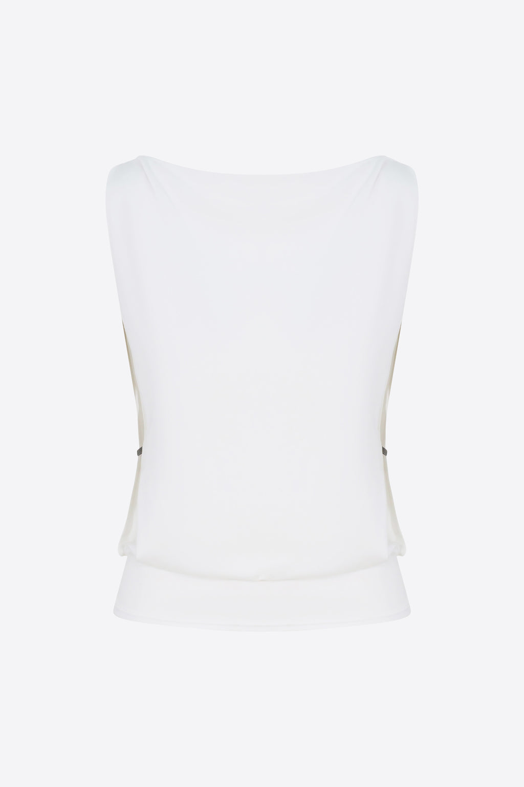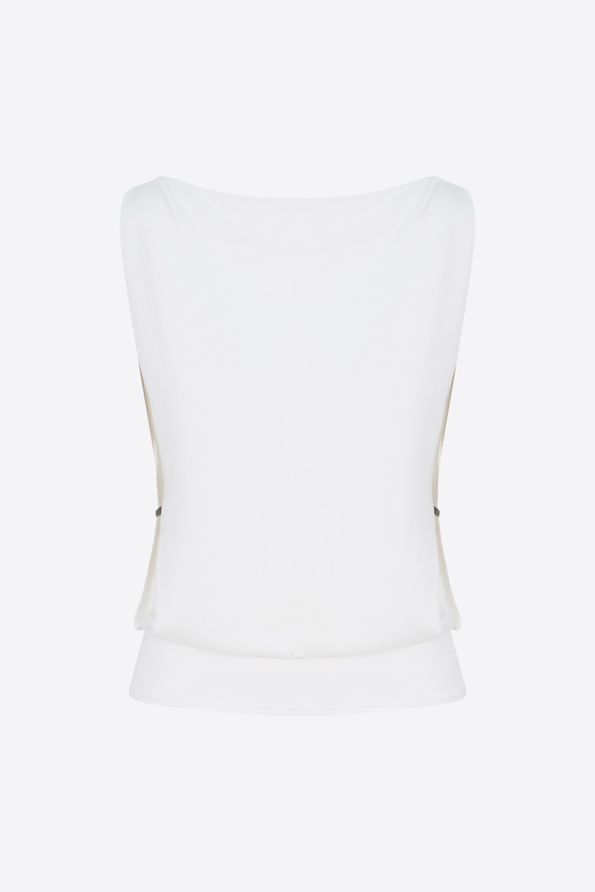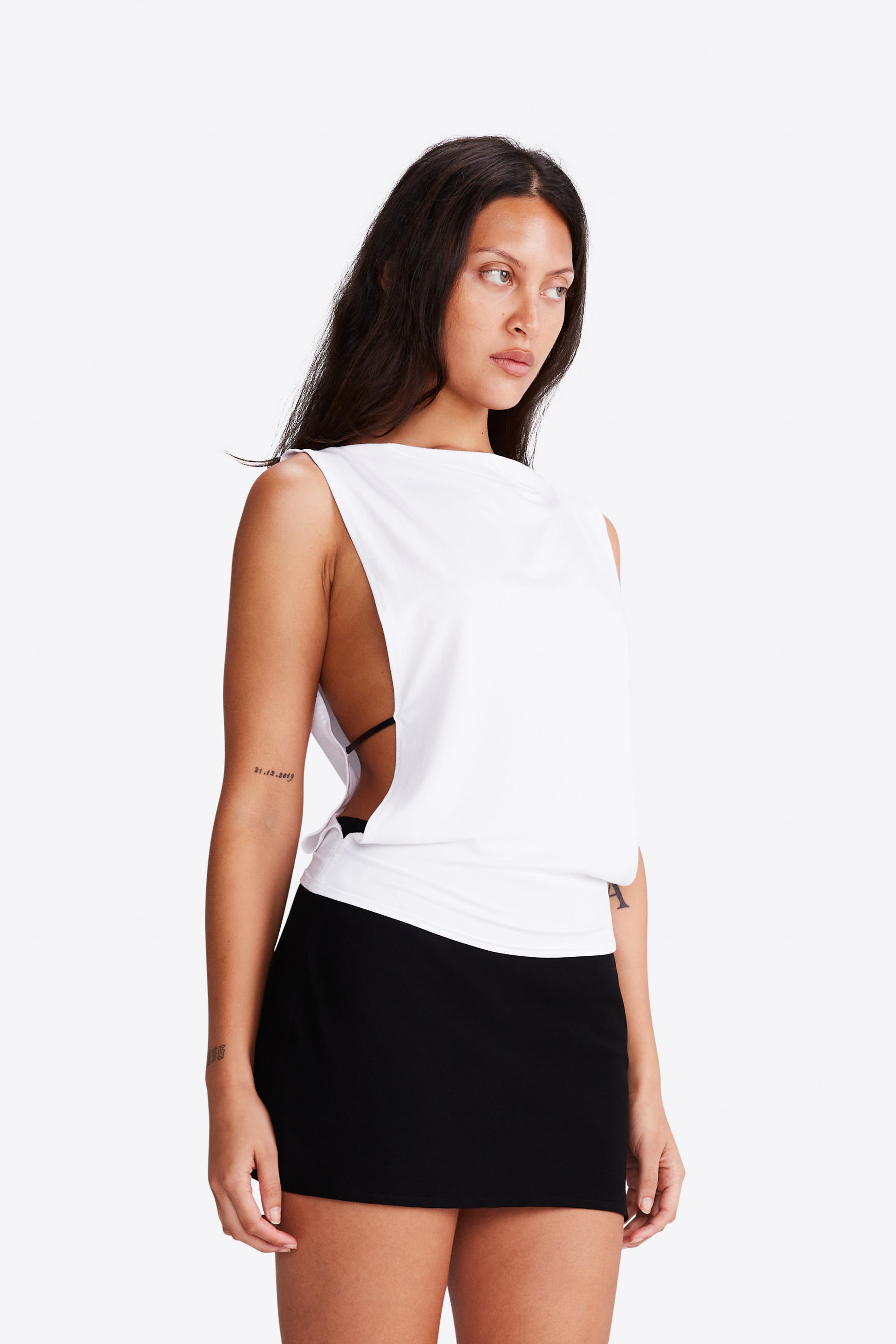 The Mensa Top, made from a soft jersey with an exposed side pulled together with a leather trim. Effortless and understated, the Mensa top is designed for hot sweaty nights.