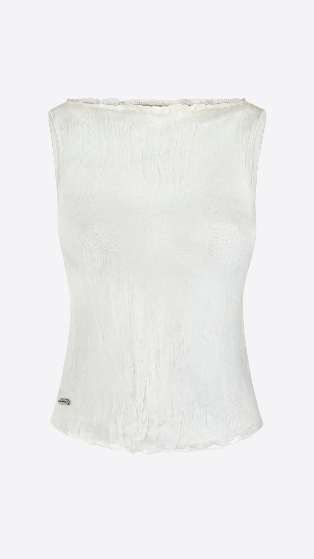 The Moya is made from crinkled silk. Our barely-there top, designed to be worn like your second skin. Inspired by muse Moya Mawhinney.
