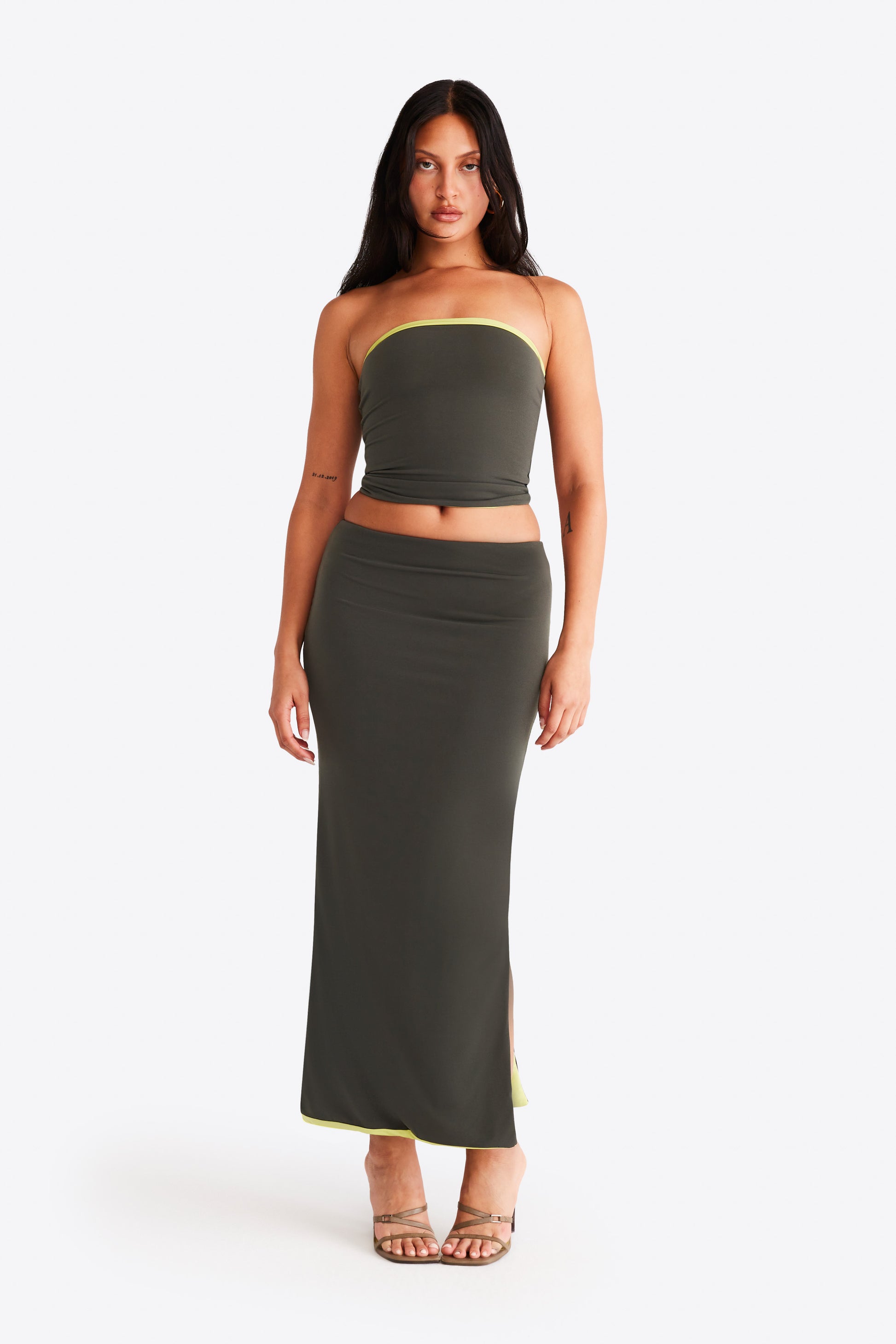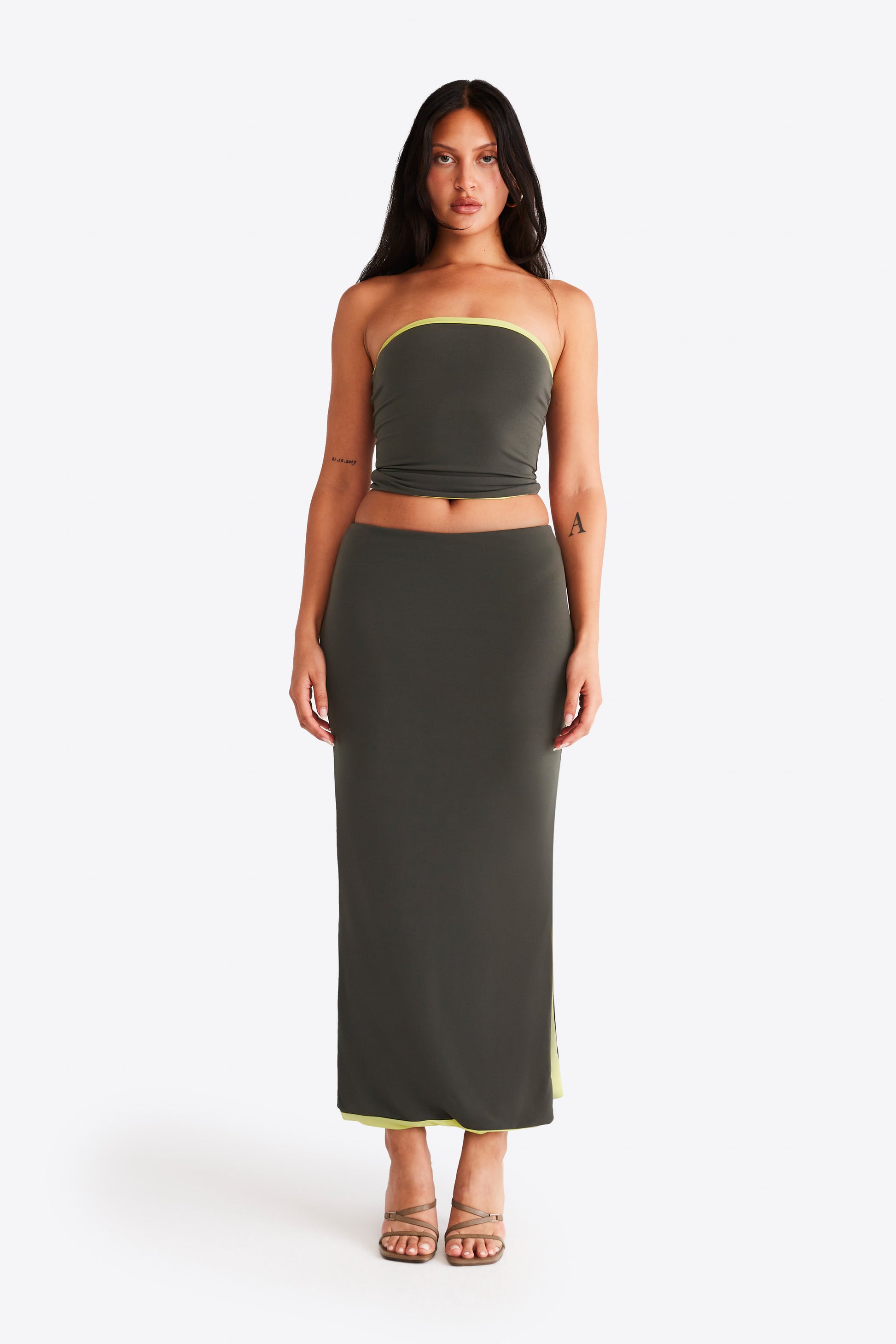 Nova Skirt - Khaki and Lime
