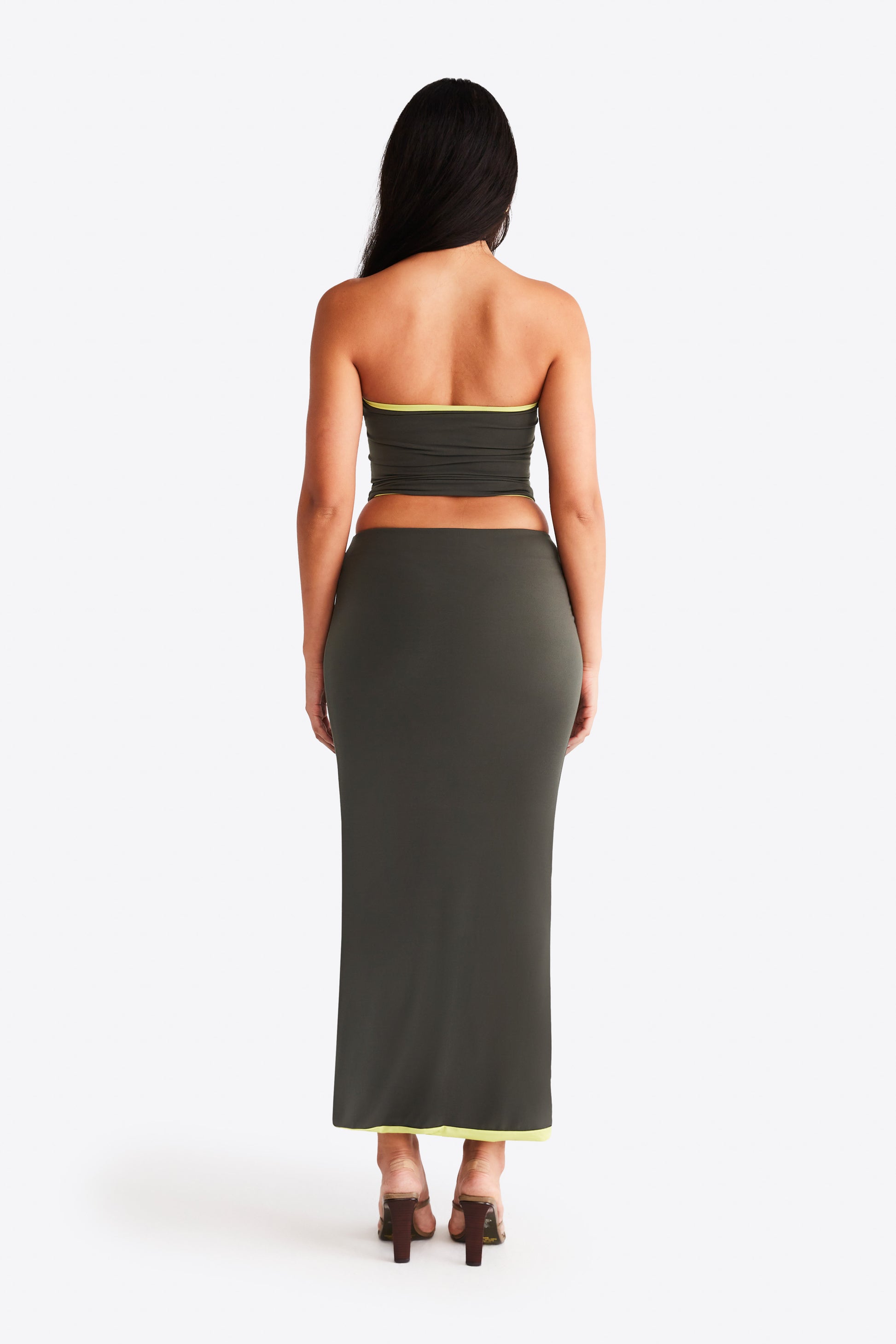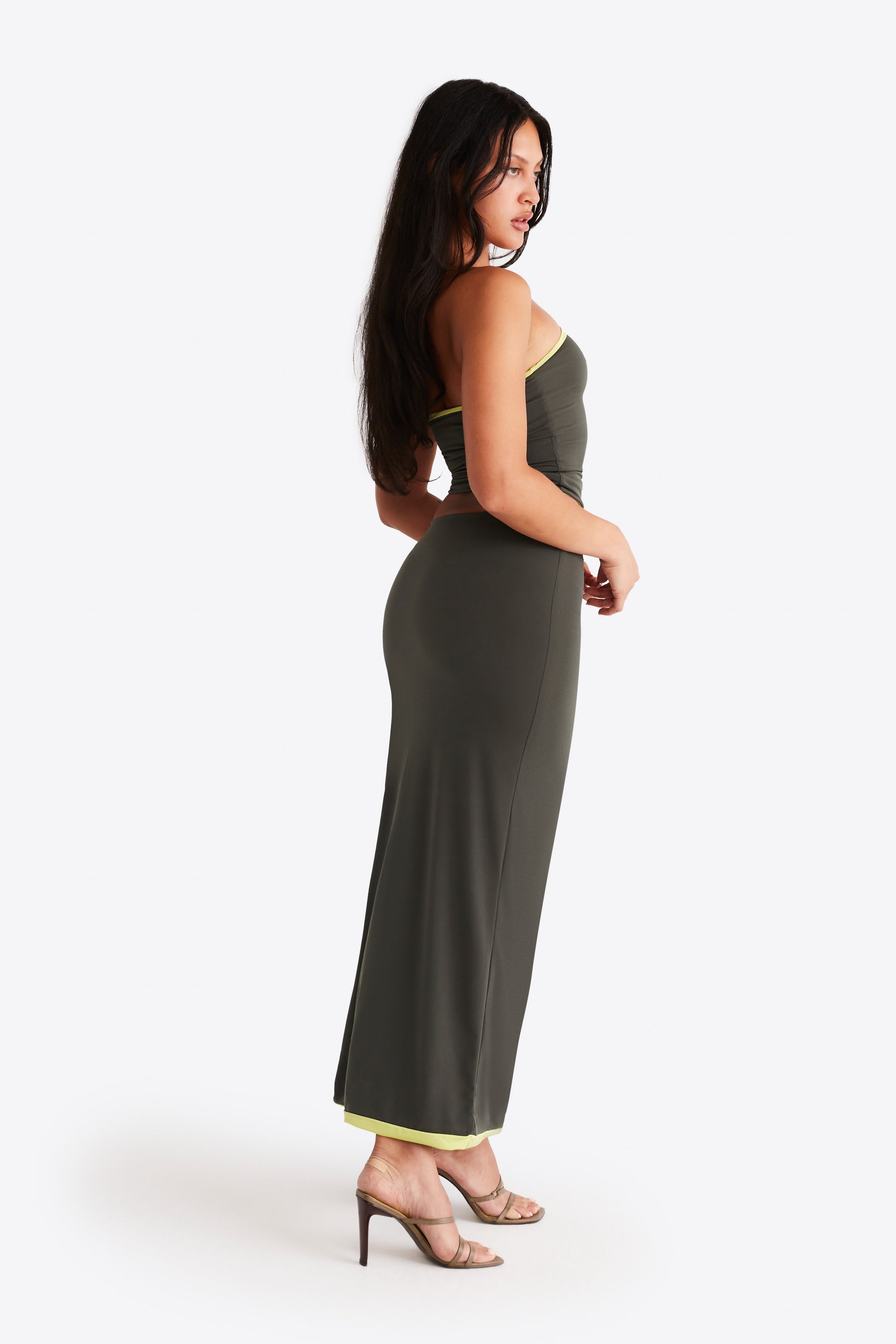 The Nova Skirt is made from a buttery soft fabric that falls to your natural body outline. Featuring a slit along the side, the Nova Skirt is the perfect day to night maxi. Pair it with its matching Nova Top.
