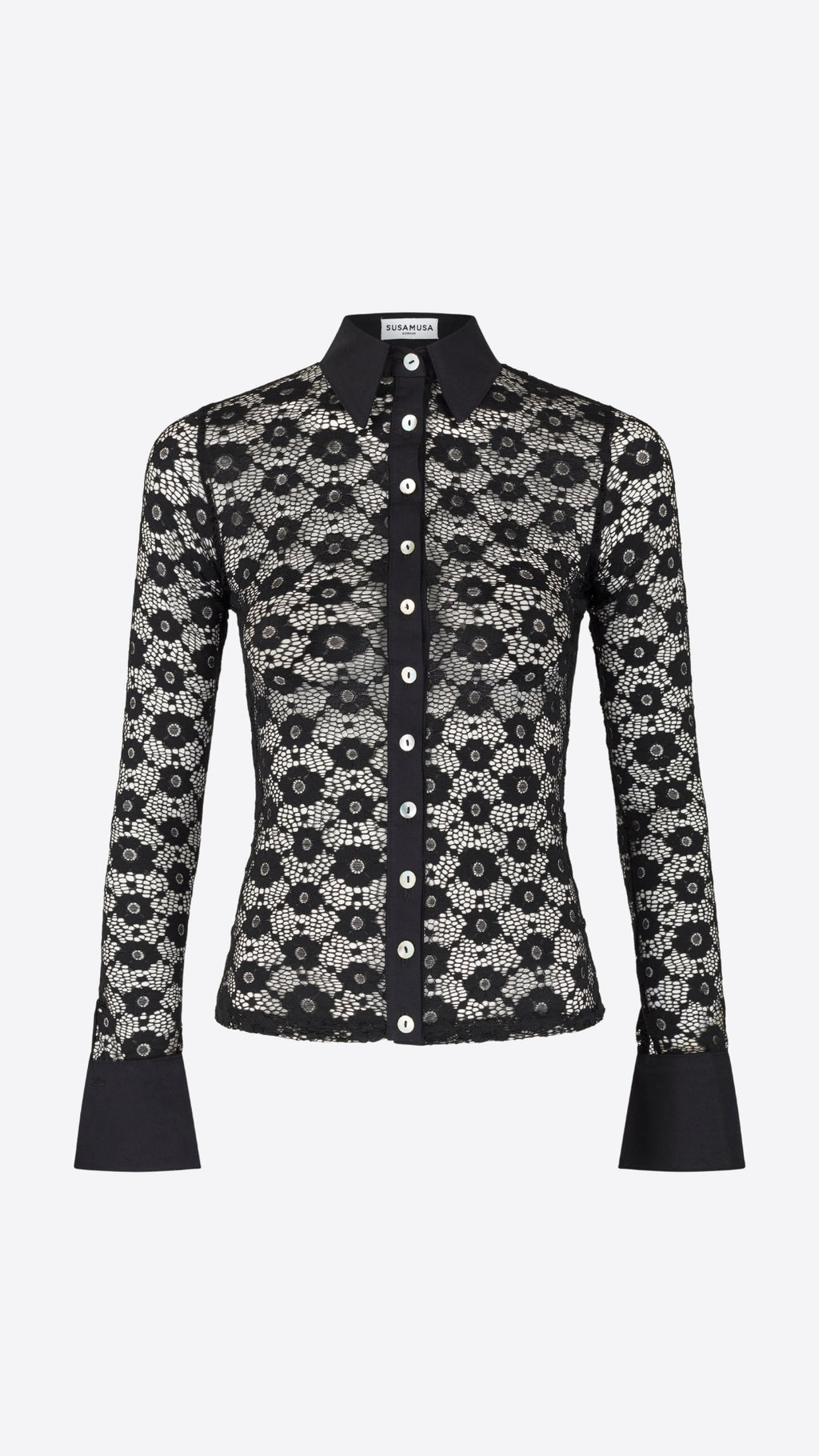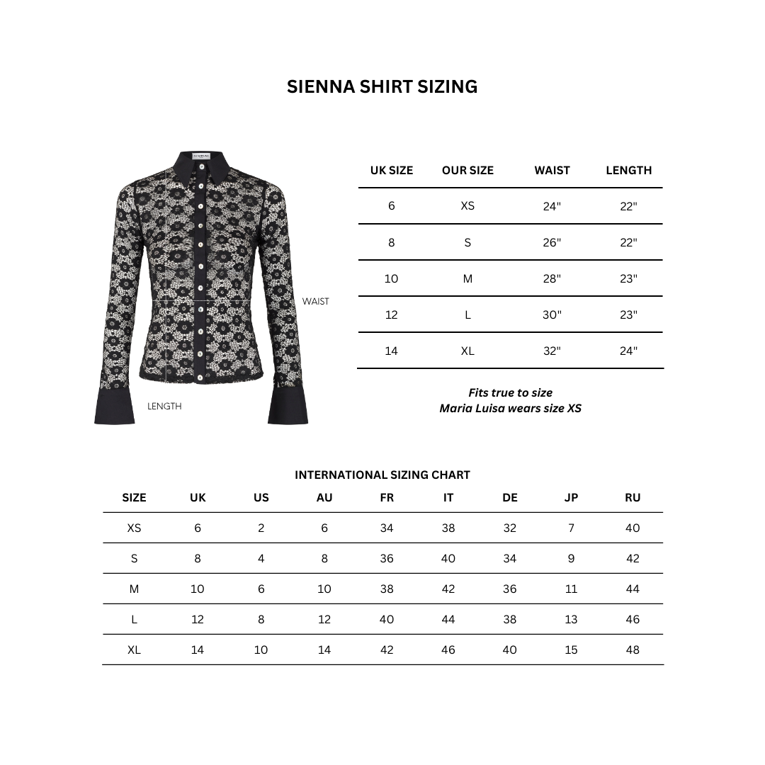 The Sienna is a timeless design made from deadstock lace that can be worn layered or pulled back with nothing underneath. It features french cuffs & vintage shell buttons.