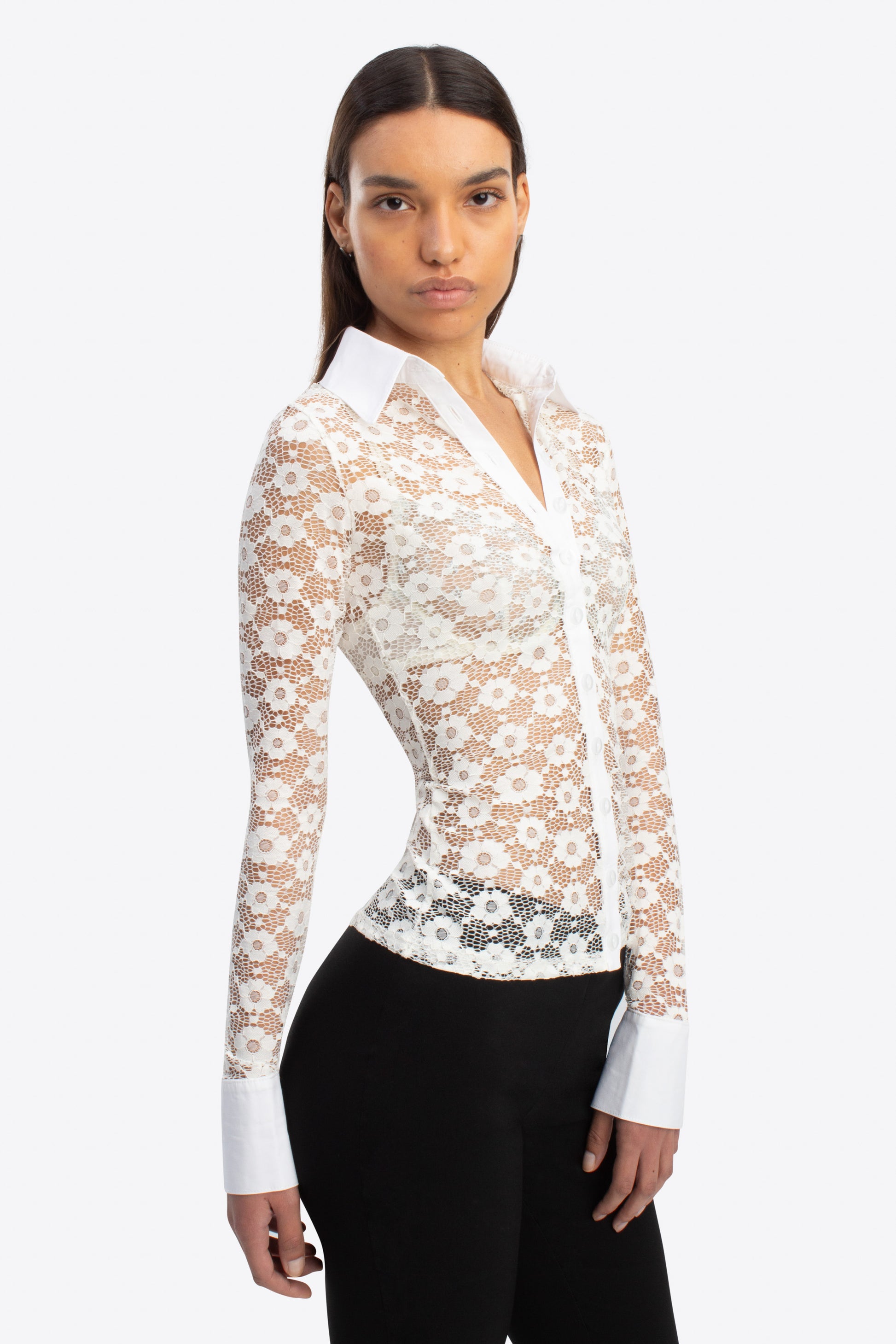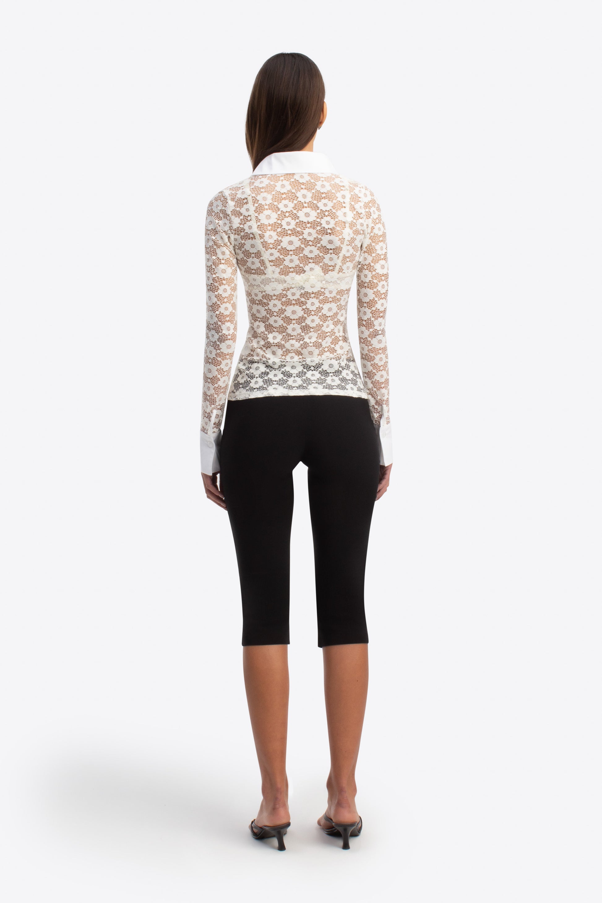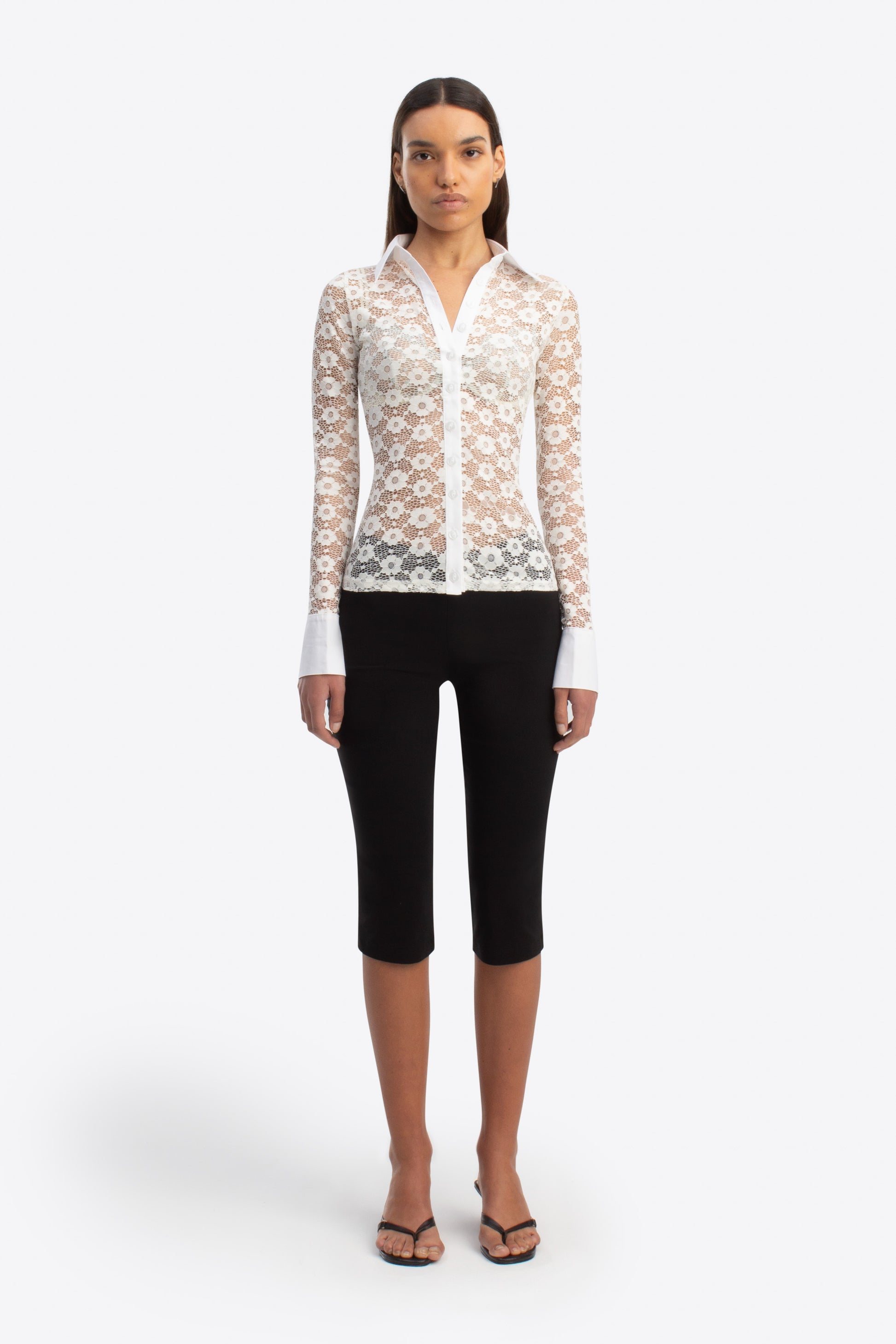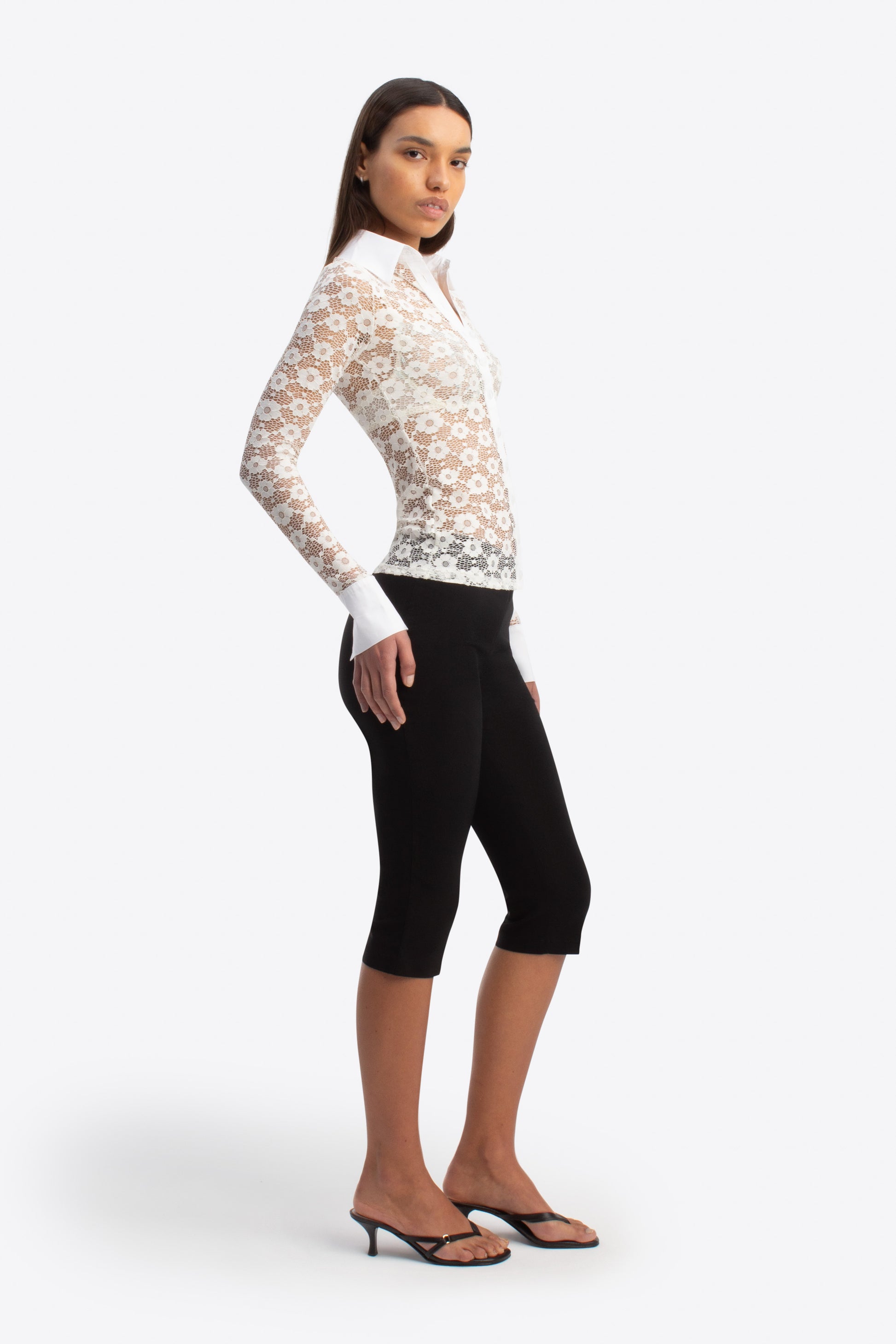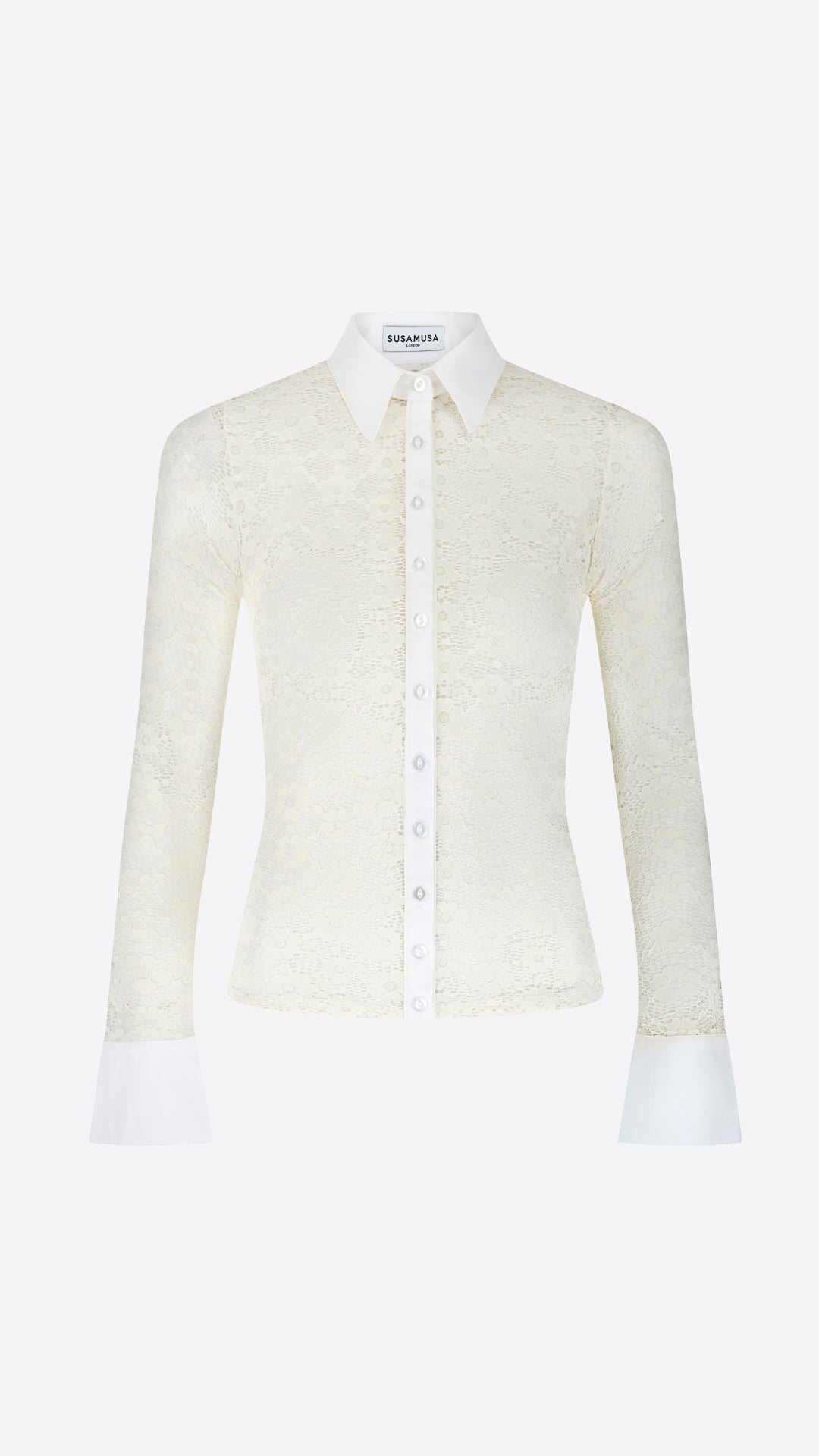 The Sienna is a timeless design made from deadstock lace that can be worn layered or pulled back with nothing underneath. It features french cuffs & vintage shell buttons.