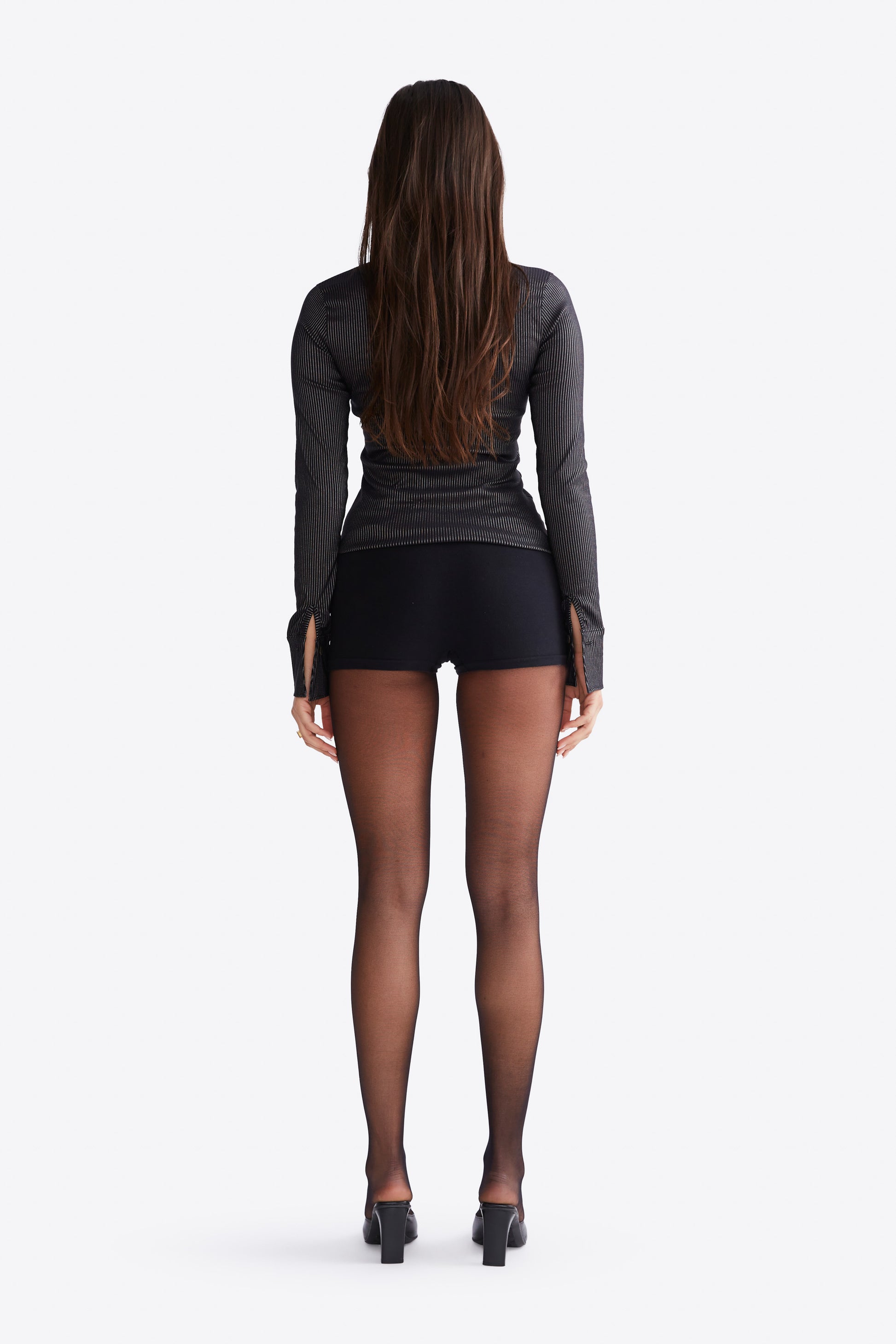 Material has stretch - if between sizes, size down. Skye wears size XS.